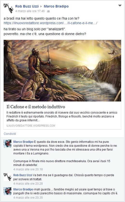 L’incongruenza è stata immediatamente stigmatizzata dal solito Rob Buzz Uzzi, attento ed imparziale osservatore, che ha richiamato subito l’attenzione di Nando Zanchetta, incolpevole ambasciatore degli scritti del Nuovo Redattore.